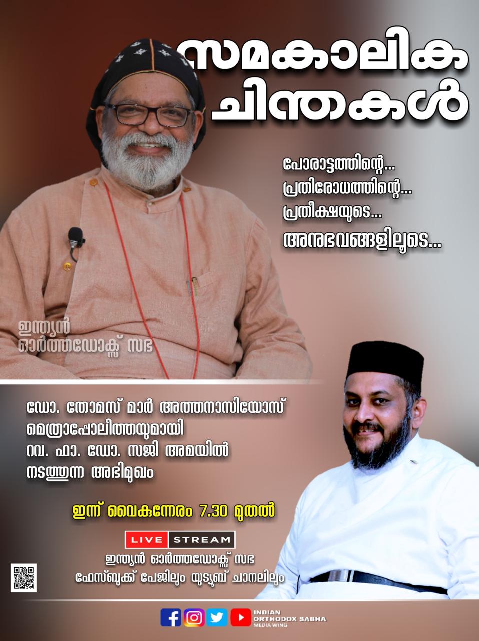 മഹാപുരോഹിതന്റെ ചുമതലകള് / ഡോ. പൗലോസ് മാര് ഗ്രീഗോറിയോസ് Read Moreയാക്കോബായ-ഓര്ത്തഡോക്സ് സഭാ തര്ക്കവുമായി ബന്ധപ്പെട്ട് മുഖ്യമന്ത്രി പിണറായി വിജയന്റെ സാന്നിധ്യത്തില് മൂന്നാംഘട്ട ചര്ച്ച നടത്തി. ഇരുവിഭാഗങ്ങള് തമ്മില് തുടര് ചര്ച്ചകള് നടത്തി പ്രശ്നങ്ങള് പരിഹരിക്കണമെന്ന് മുഖ്യമന്ത്രി അഭ്യര്ത്ഥിച്ചു. അതിന് അവര് തന്നെ മുന്കൈ എടുക്കണം. സംഘര്ഷങ്ങളും രക്തച്ചൊരിച്ചിലും ഒരിക്കലും ഉണ്ടാകരുതെന്നാണ് സര്ക്കാരിന്റെ …