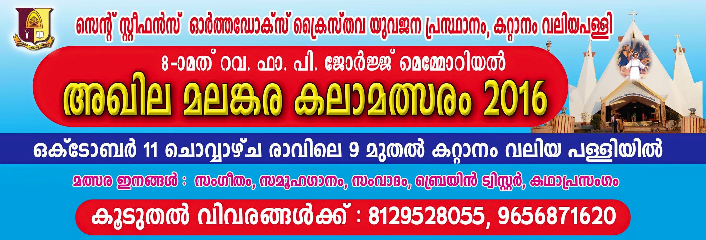 മലങ്കര സഭയിലെ പ്രമുഖ പള്ളികളിലൊന്നായ കറ്റാനം വലിയപള്ളി യുവജന പ്രസ്ഥാനത്തിന്റെ ആഭിമുഖ്യത്തില് 8 -ാമത് റവ. ഫാ. പി. ജോര്ജ്ജ് മെമ്മോറിയൽ അഖില മലങ്കര കലാമത്സരം 2016 ഒക്ടോബർ 11 ചൊവ്വാഴ്ച്ച രാവിലെ 9 മുതൽ കറ്റാനം വലിയപള്ളിയിൽ വെച്ച് നടക്കും.