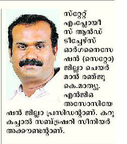 Awards & Honoursരഞ്ജു കെ. മാത്യു സെറ്റോ ജില്ലാ ചെയര്മാന് January 20, 2017January 20, 2017 - by admin രഞ്ജു കെ. മാത്യു സെറ്റോ ജില്ലാ ചെയര്മാന്
